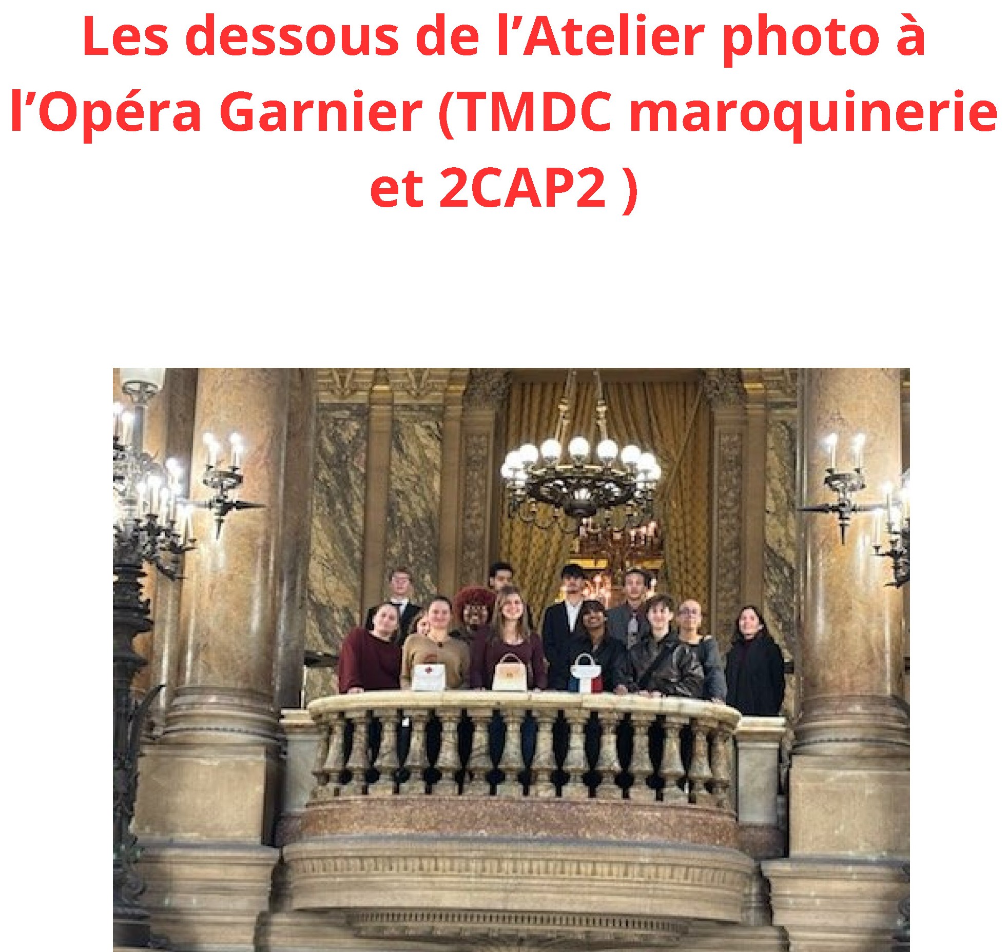 Ils ont expérimenté les techniques photographiques au lycée (initiation au cadrage, à la lumière, la composition) puis lors d’un atelier à l’Opéra Garnier le vendredi 23 janvier. Les sacs des Terminales et des réalisations de petite maroquinerie des 2 CAP2 ont été sublimés par ce lieu d’exception.